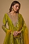 Featuring a parrot green kurta in chanderi base with gota-patti work. It is paired with pants and a dupatta. Elevate it with statement gold jhumkas and metallic gold heels for a festive occasion, mehendi or engagement ceremony.