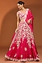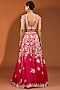 Featuring a red lehenga in organza base with pearl work. It is paired with a spun silk blouse and a dupatta. Accentuate with statement jewellery and heels for a wedding, sangeet or engagement ceremony.