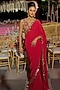 Featuring a red pre-stitched saree in georgette base with cutwork embroidery. It is paired with an embroidered blouse. Accentuate it with kundan polki or zircon jewellery, embellished heels and a potli bag for a wedding or sangeet ceremony.