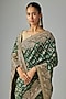 Featuring a green saree in silk base with a running blouse.Style it with statement gold jewellery, sleek heels, and a neat bun for weddings, receptions, festive celebrations, and elegant evening occasions.