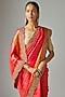 Featuring an orange saree in kanjeevaram silk base. It is paired with an unstitched blouse piece. Style it with statement gold jewellery, sleek heels, and a neat bun for weddings, receptions, festive celebrations, and elegant evening occasions.