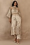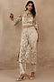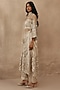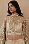 Featuring a beige kurta in tulle base with applique and mirror work, including flared sleeves and a v-neckline. Accentuate it with pants, dangler earrings and heels for festive gatherings or pooja ceremony.